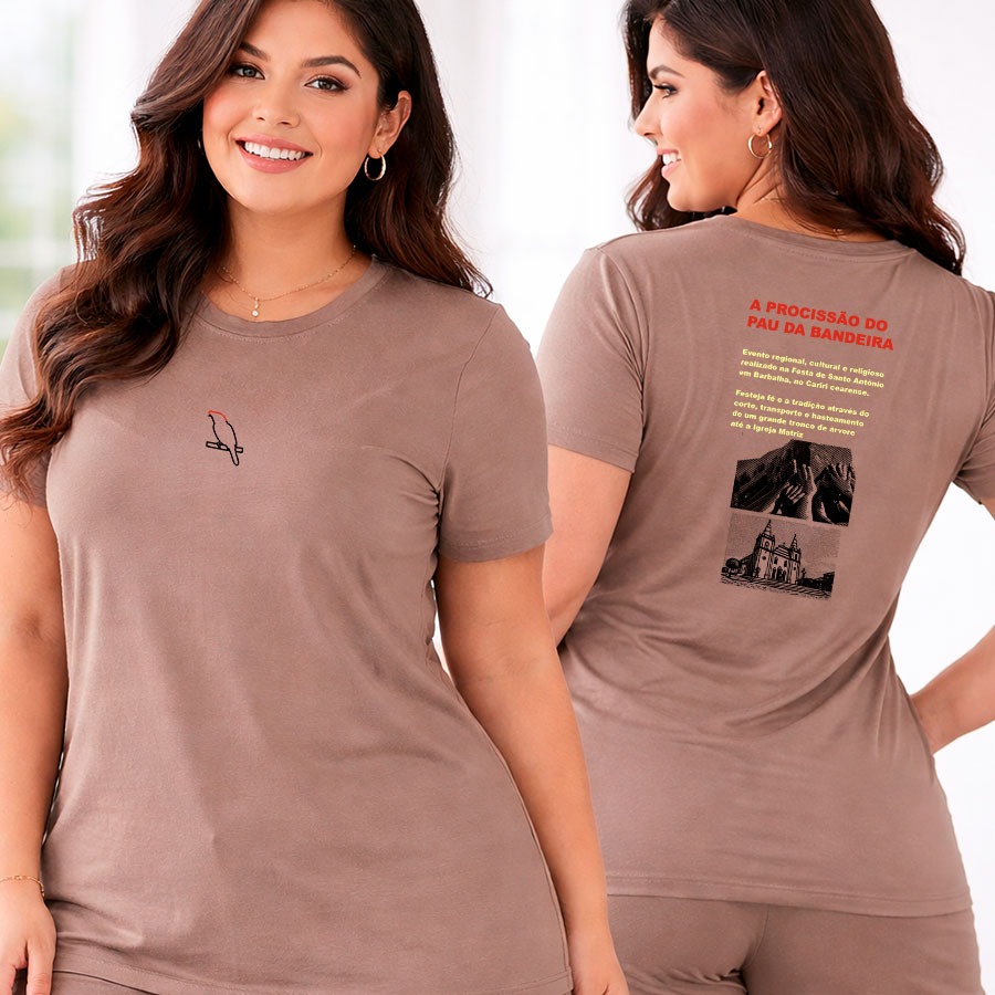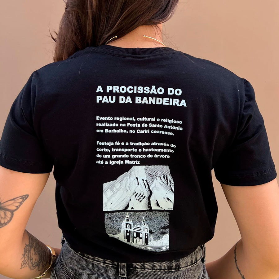 A camiseta básica é o item essencial que combina com tudo, finalizada com uma estampa frontal sobre a Procissão de Barbalha e da nossa marca. Combina com um jeans e uma camisa sobreposta para um visual descontraído e arrumado. Seu ajuste regular e corte clássico garantem flexibilidade de movimento e um caimento impecável, proporcionando confiança e estilo em todos os momentos. O design atemporal e versátil da camiseta com estampa frontal permite que ela seja usada desde um almoço com família até um evento mais formal.