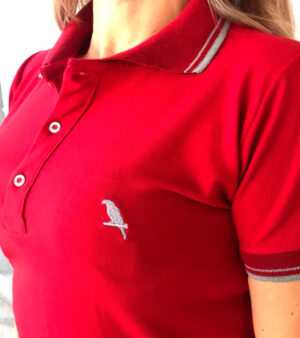T-shirt casual gola V, manga curta em malha viscose. Gola em viscose. Bordado de pássaro no peito esquerdo.